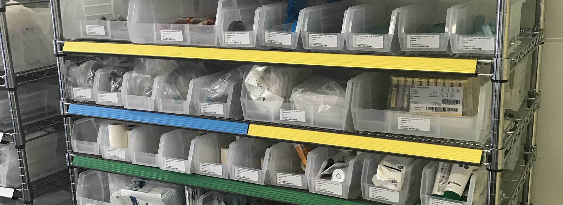 Based on historical usage data, DSI work with Supply Chain and Nursing Staff to establish PAR levels levels to ensure stock for a given time period. Your PAR quantities are then placed into our high density storage units which are divided into two equally sized bins - Main bin and Backup bin, split 50/50.